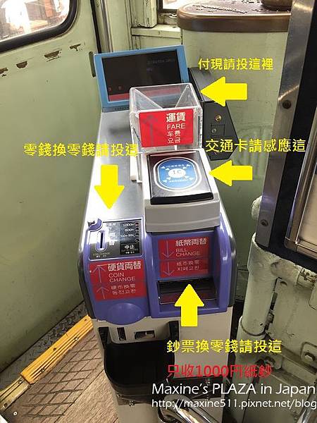 如果身上零錢不夠,車上也有換錢機器可以使用,但是紙鈔換零錢只收1000円喔!