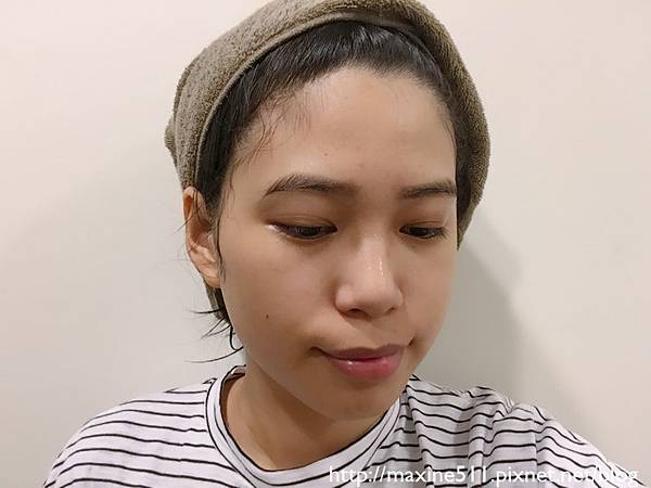 膚完面膜後臉部會變得比較保濕,可以再針對容易乾燥脫皮的部位加工。我會再拿ㄧ些精華按摩鼻子跟兩頰。