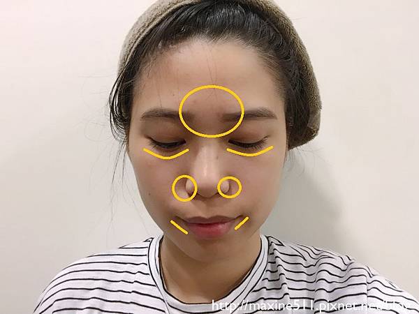 橘色圈圈跟畫線區域是我臉部肌膚狀況比較不穩定的部位。