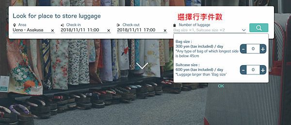 中間要填入時間的check-in跟check-out的時間不是入住飯店或待在日本的時間,而是你要寄放行李的時間,最後在填入你要寄放的行李件數。