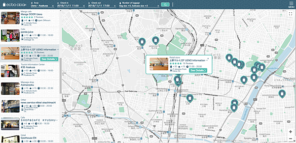 如果我選擇了丸井百貨這的地點,地圖會顯示店家所在的位置,使用起來真的跟airbnb很像。