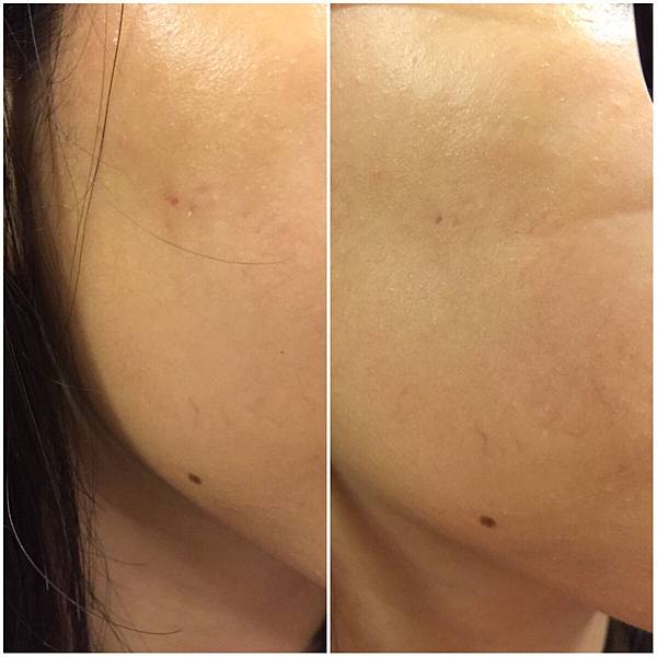 用了兩週之後雖然斑點還在,但是周圍的暗沉有減少許多,我個人很滿意這個效果,有斑點沒有關係,至少不要暗沉影響氣色就好。