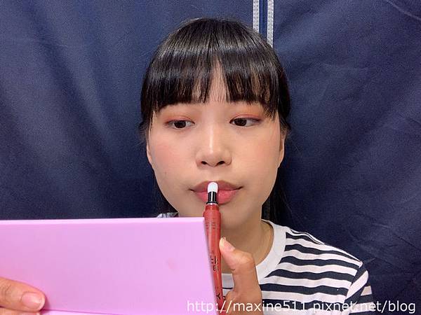 唇彩的部分則是要使用NYX澎澎泡芙氣墊唇釉,色號 PRANK CALL。這是我第一次使用氣墊唇釉,慕斯質地的唇釉可以均勻塗滿或沾取一點慢慢推開。我個人唇色較深,我覺得這一款遮唇色效果不錯,不顯唇紋跟死皮。妝容全部完成後可以再用NYX的定妝噴霧定妝,讓妝容更持久完美。