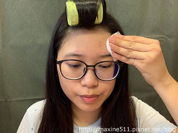 清潔完臉部與脖子之後,依照當天肌膚狀況使用化妝水,化妝水我全臉跟脖子都會擦,鎮定一下肌膚。由於最近比較常熬夜,額頭有點小爆痘,所以額頭我會另外保養。