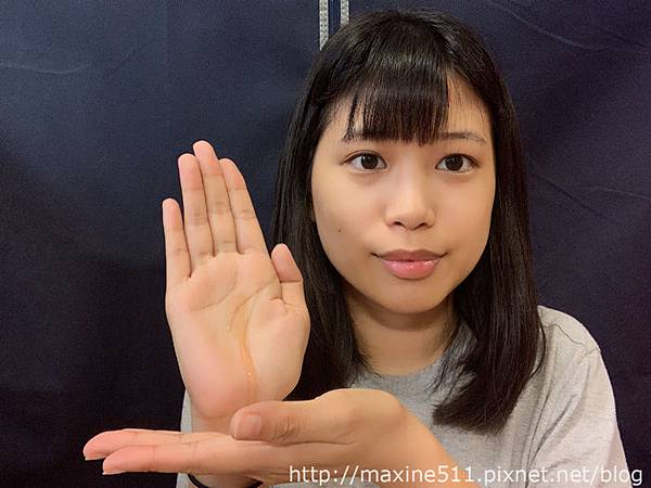 直接塗抹在手背上,手部肌膚有光澤但實際上卻不油膩,因為水+油的關係,肌膚吸收速度更好。