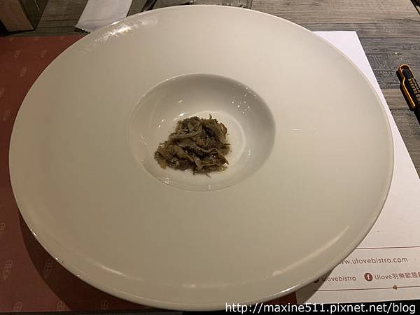 這道菜我超級喜歡,雖然水蜜桃的口感大於火腿,但因為還加了薄荷葉跟紅酒醬,甜甜的水蜜桃搭配微酸的醬汁,非常推薦這道開胃小點。