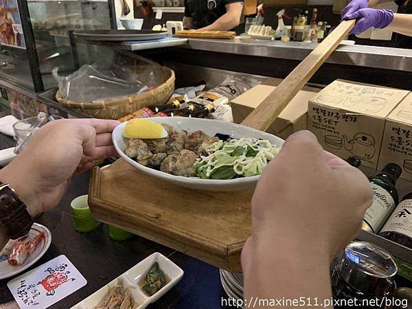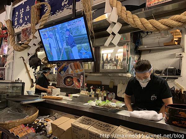這次用餐坐在吧檯的位置,每次到日本料理店都很喜歡坐在吧檯的位置,能近距離觀察廚師做料理的模樣,還可以體驗「狸爐端燒」超有特色的"用船槳送餐"唷!