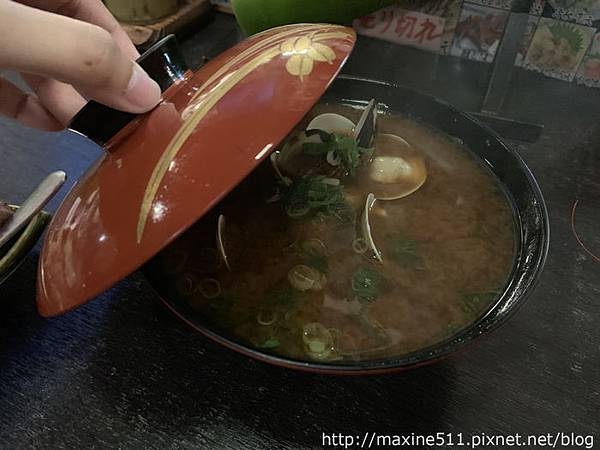 來到日式料理店,總是會想要點個味噌湯來喝。這裡的味噌使用的是名古屋的赤味噌,還放了好多蛤蜊,喝的好滿足~