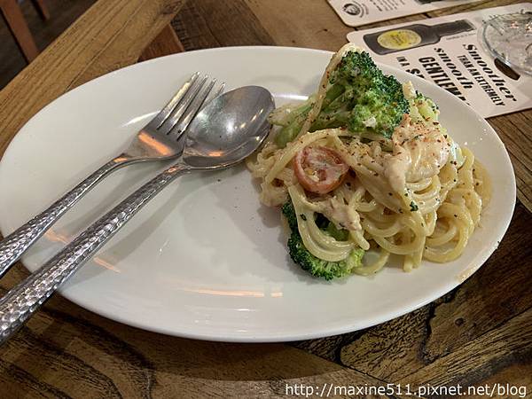 義大利麵的配料給的很也誠意,份量很多。麵條部分料理的很完美,麵條非常Q彈,奶油味不油膩,很棒!如果想吃辣可以跟我一樣加一點辣粉~