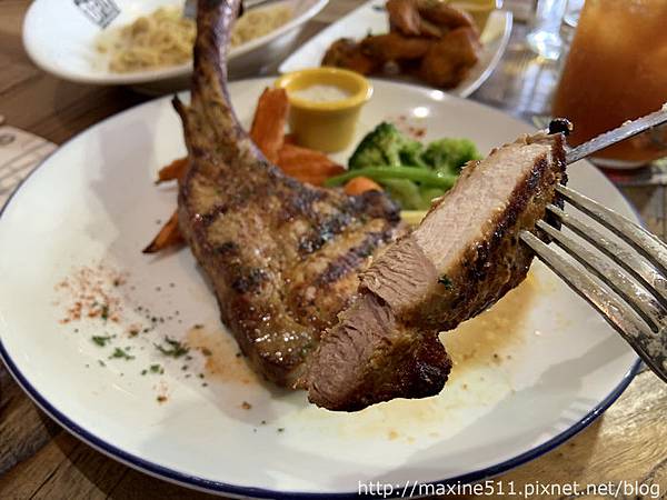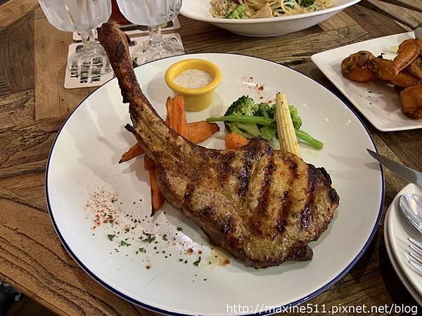 戰斧豬排的外層酥酥脆脆,肉質瘦肉較多沒有太多的筋或油質,豬肉的香氣很濃郁,想吃點牛排以外的東西一定要試試看戰俘豬排。搭配豬排的配菜(應該是地瓜?)我也覺得超好吃!